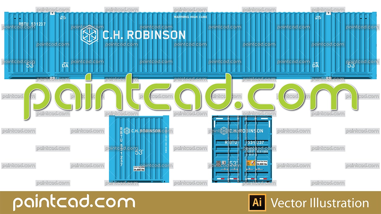 Side and front view of large high cube container produced by CIMC- China International Marine Containers. Reporting mark RBTU - Charles Henry Robinson. EDITORIAL USE