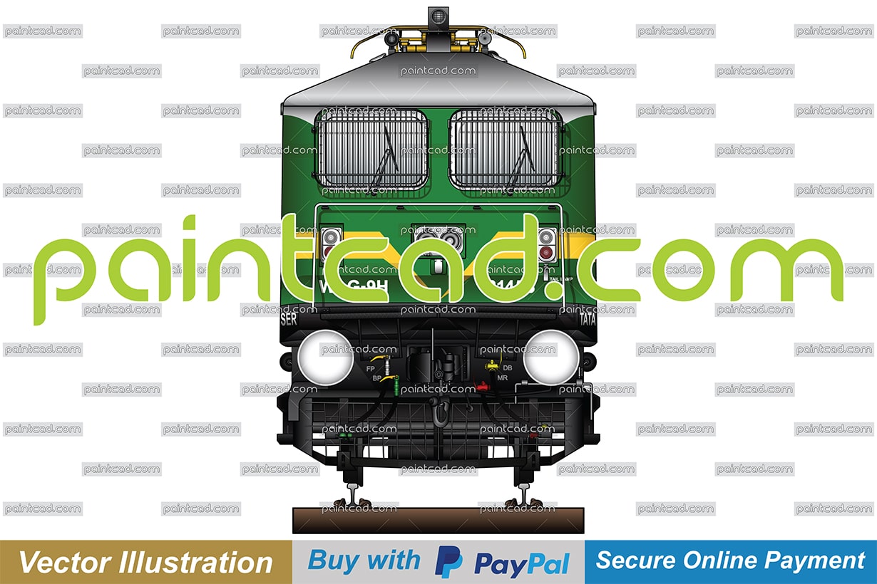 Vector illustration with front view of electric locomotive WAG-9 used in Indian Railways to serve freight trains. Equipment - pantograph Echeron ES10, AAR tightlock couplers and chain link couplers. Abbreviation WAG-9 mean: W - Broad Gauge, A – AC electric traction, G – Goods and “9” - the serial number of the modification of machine. EDITORIAL USE