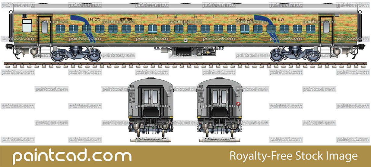 Linke Hofmann Busch passenger coach with general seatings. Duronto yellow-green livery and reporting mark NW - North Western Railway zone of Indian Railways. Modern rolling stock of train between Ajmer Junction and Hazrat Nizamuddin. EDITORIAL USE