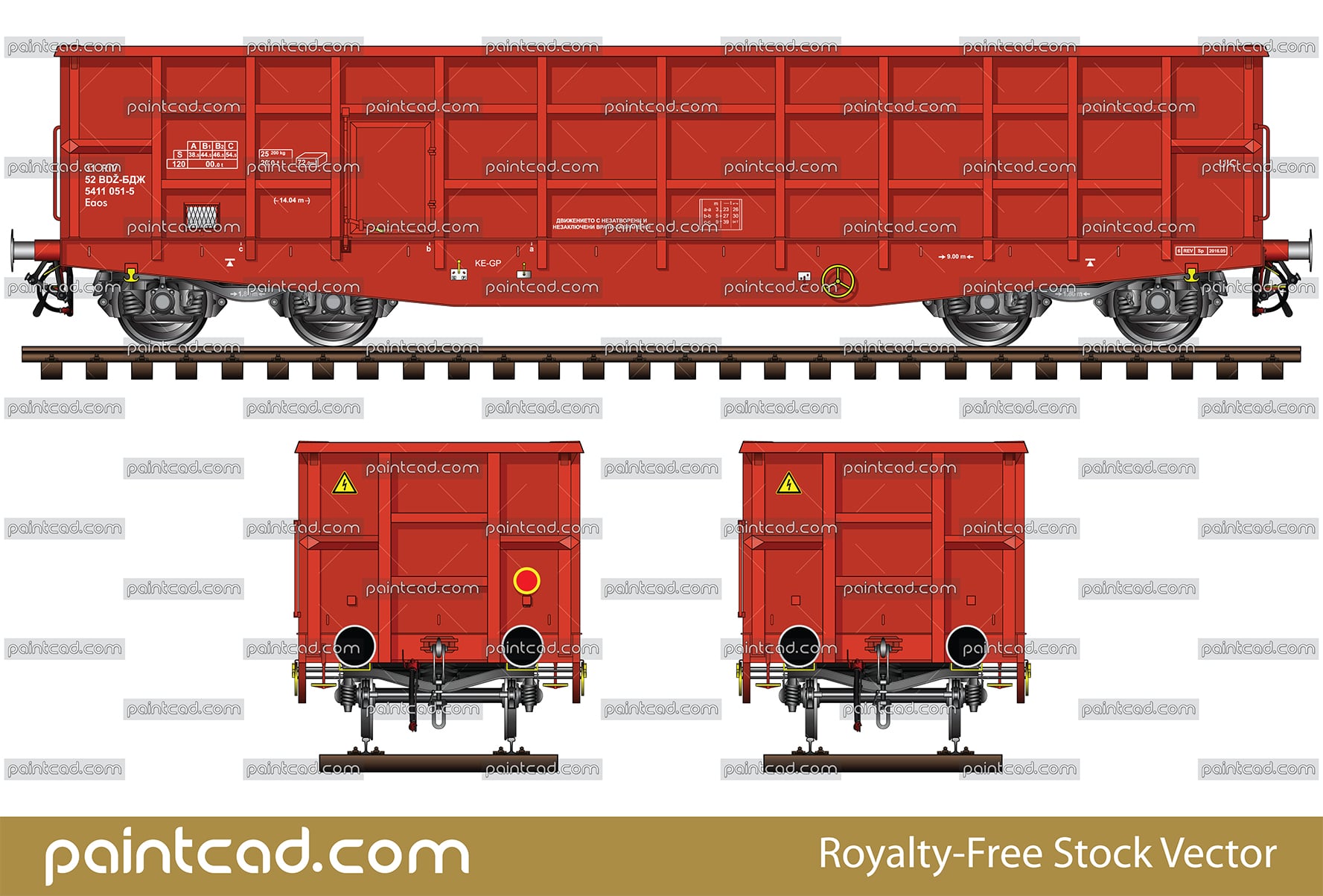 Railway gondola for transporting of bulk goods, coal, ore, scrap, steel, wood and paper. Train livery - Bulgarian State Railways with all technical inscriptions and details: bogies, air hoses, hand brakes and other. EDITORIAL USE