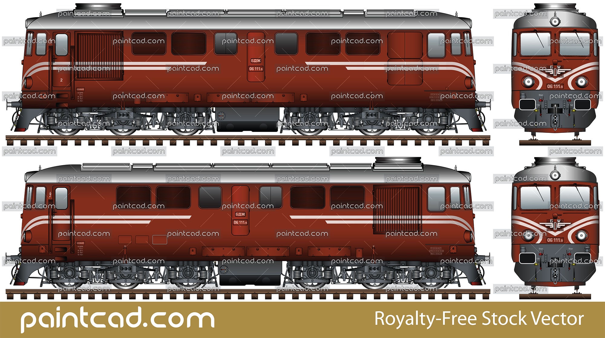 Side and front view with six axle diesel-electric locomotive built in Craiova, Romania under Swiss license. The machine is known as serie 06 by designation of Bulgarian State Railways. Engine is designed for a maximum speed of 100 kmph and mainly to serve freight trains. EDITORIAL USE