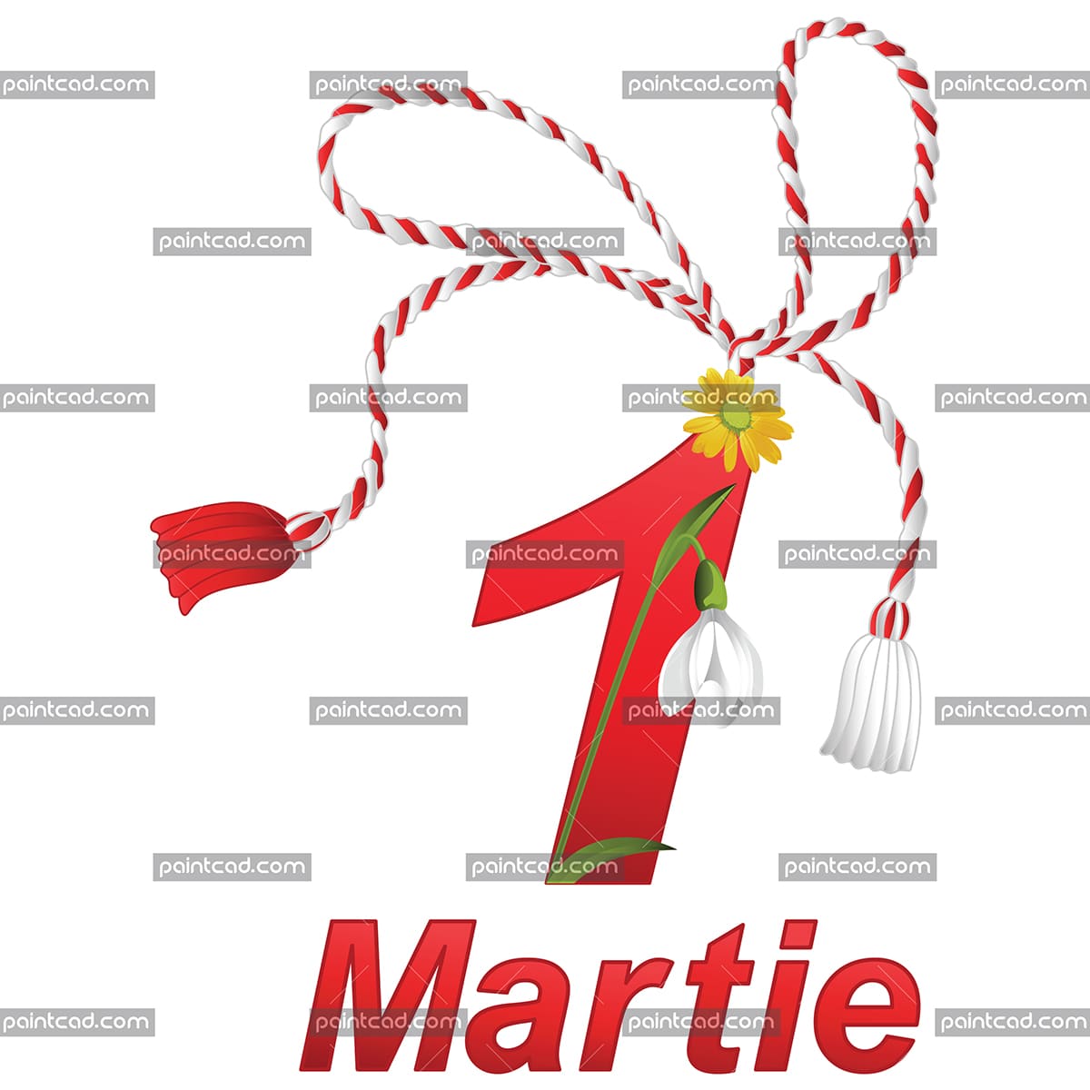 Vector illustration for coming of spring in Romania. On the same date is also celebrated in Moldova. People believe that every who wears the red and white string would enjoy a prosperous and healthy year. A symbol of the coming spring is the snowdrop flower.