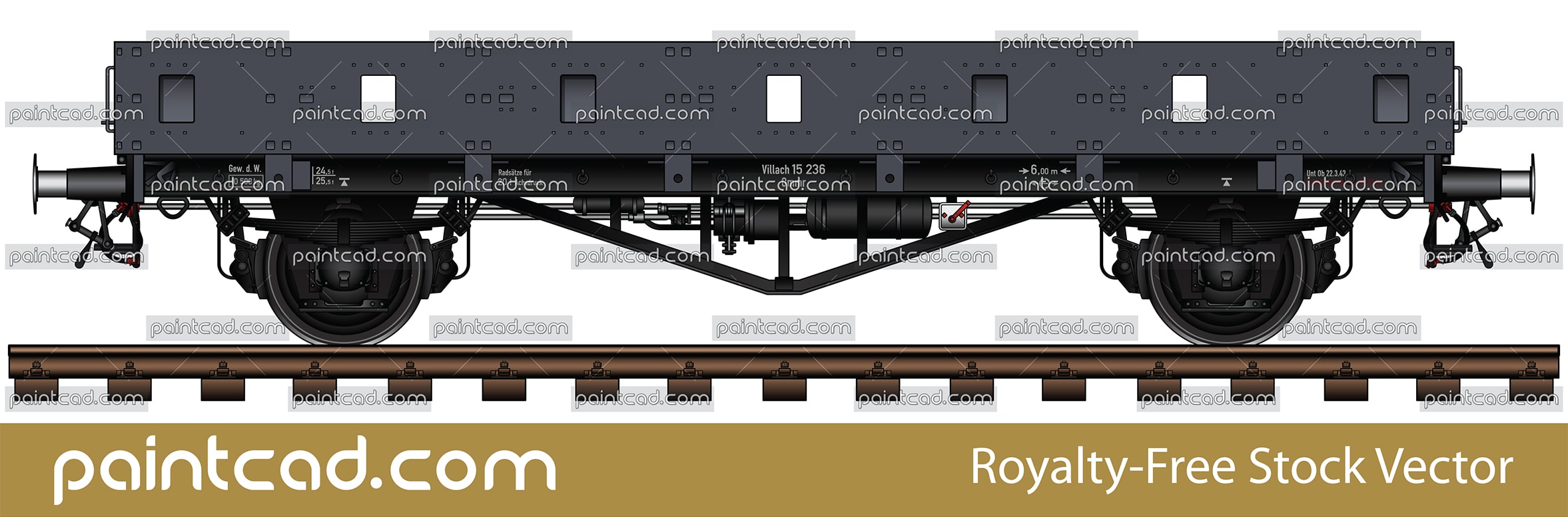 Vector illustration with side view of flatbed combat wagon Ommr type used by the Nazi troops during the Second World War. Armored railroad vehicle with orifices for weapons - category "Armored trains".