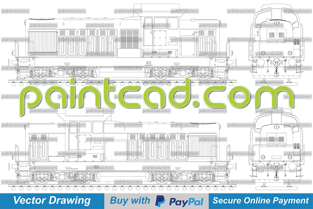 High-detailed vector drawing of diesel-electric locomotive Serie 55 (LDH 125) used by Bulgarian State Railways. Side and front view with many details created via AutoCAD. All elements of the sketch are arranged in separate layers.