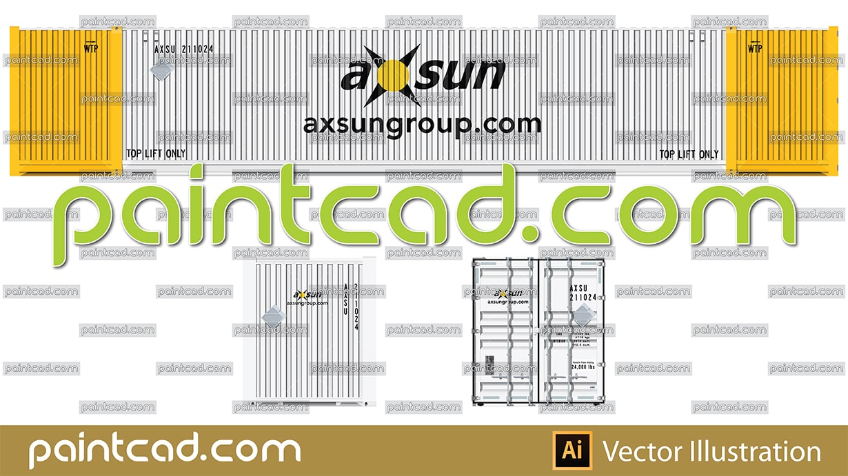 Side and front view with cargo container produced by CIMC. Reporting marк AXSU of the Canadian freight transportation company Axsun with head offices situated in Canada, USA and Mexico. EDITORIAL USE