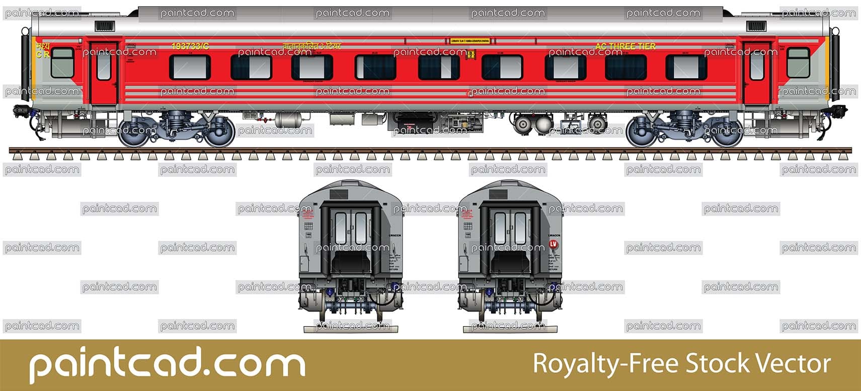 Side and front view with Indian Air-Conditioned sleeper. Details- horizontal ribbed shell body, destination board of train 11055 / Lokmanya Tilak Terminus/LTT-Gorakhpur Junction/GKP-Chhapra Junction/CPR, water pumps and all designations. Reporting mark- CR - मध्य - Central Railway zone. EDITORIAL USE