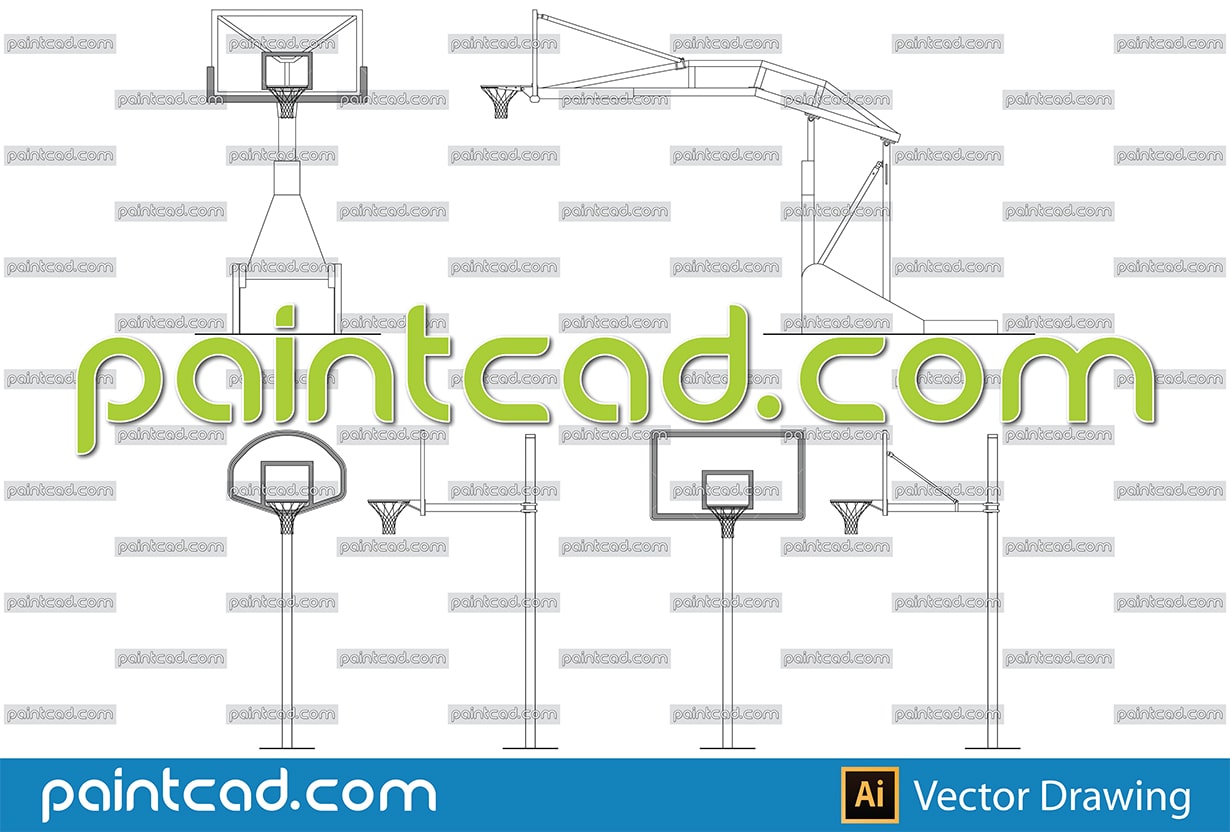 Vector illustration with outdoor basketball stands - front and side views. Diagrams can be used for graphic design, icons and other artworks. Isolated drawings over white background.