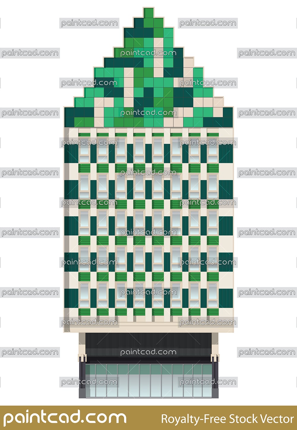 Front view with extravagant Dutch building from Zaandam city, North Holland. The facade style refer to Zaanse. This is a serie of separate buildings which including different colors and materials for their construction. A modern office complex. EDITORIAL USE