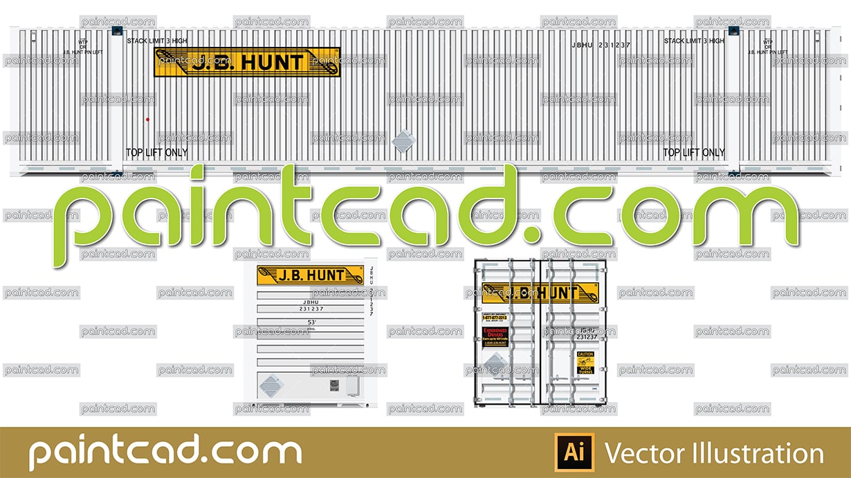 Side and front view of cargo container produced by CIMC- China International Marine Containers. Details- doors, padlock, rivetless aluminum placard holders with back plate, lifting slots, all technical inscriptions and designations. Reporting mark JBHU- J.B. Hunt Transport Services. EDITORIAL USE