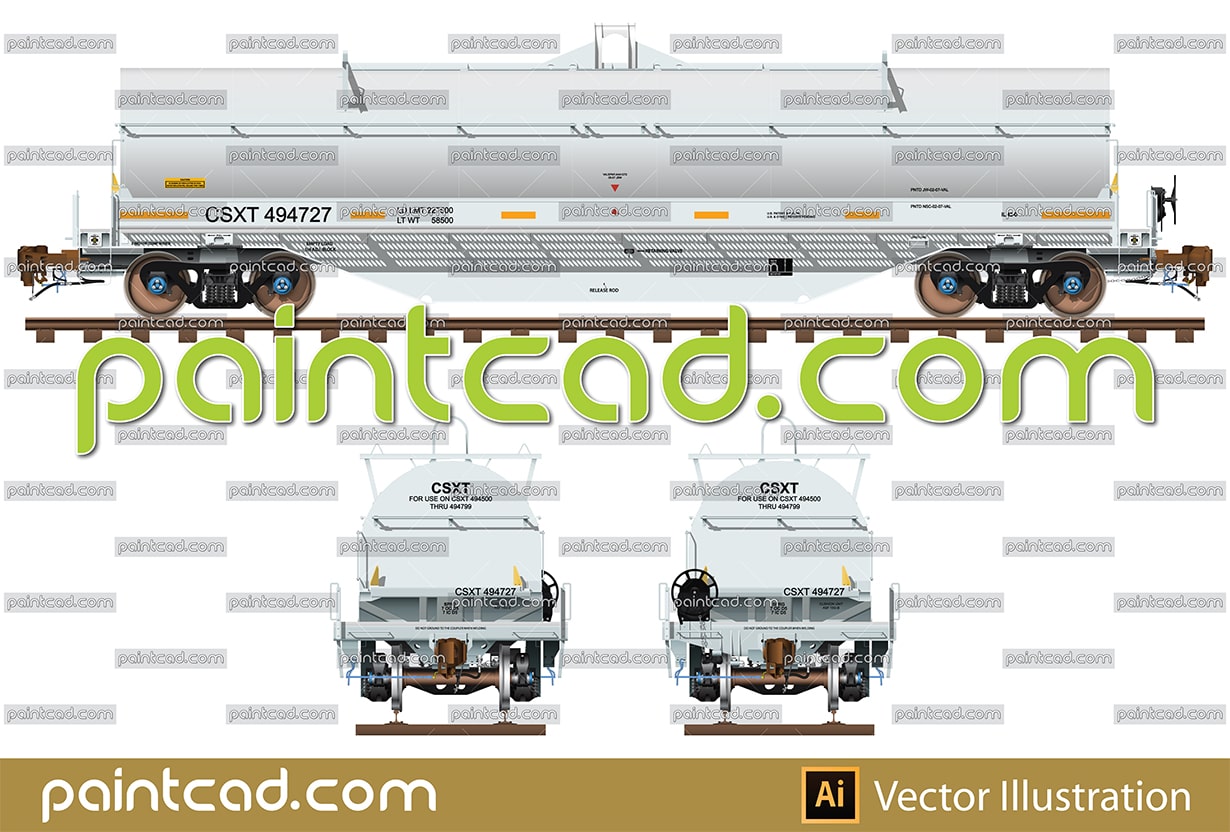 Side and front view with coil car for transport of rolled steel. Details- metal cover with handles, cushion couplers, hand airbrake, bogies, logos, all technical inscriptions and notes. The builder of this car is NSC, Canada. Reporting mark CSXT. EDITORIAL USE