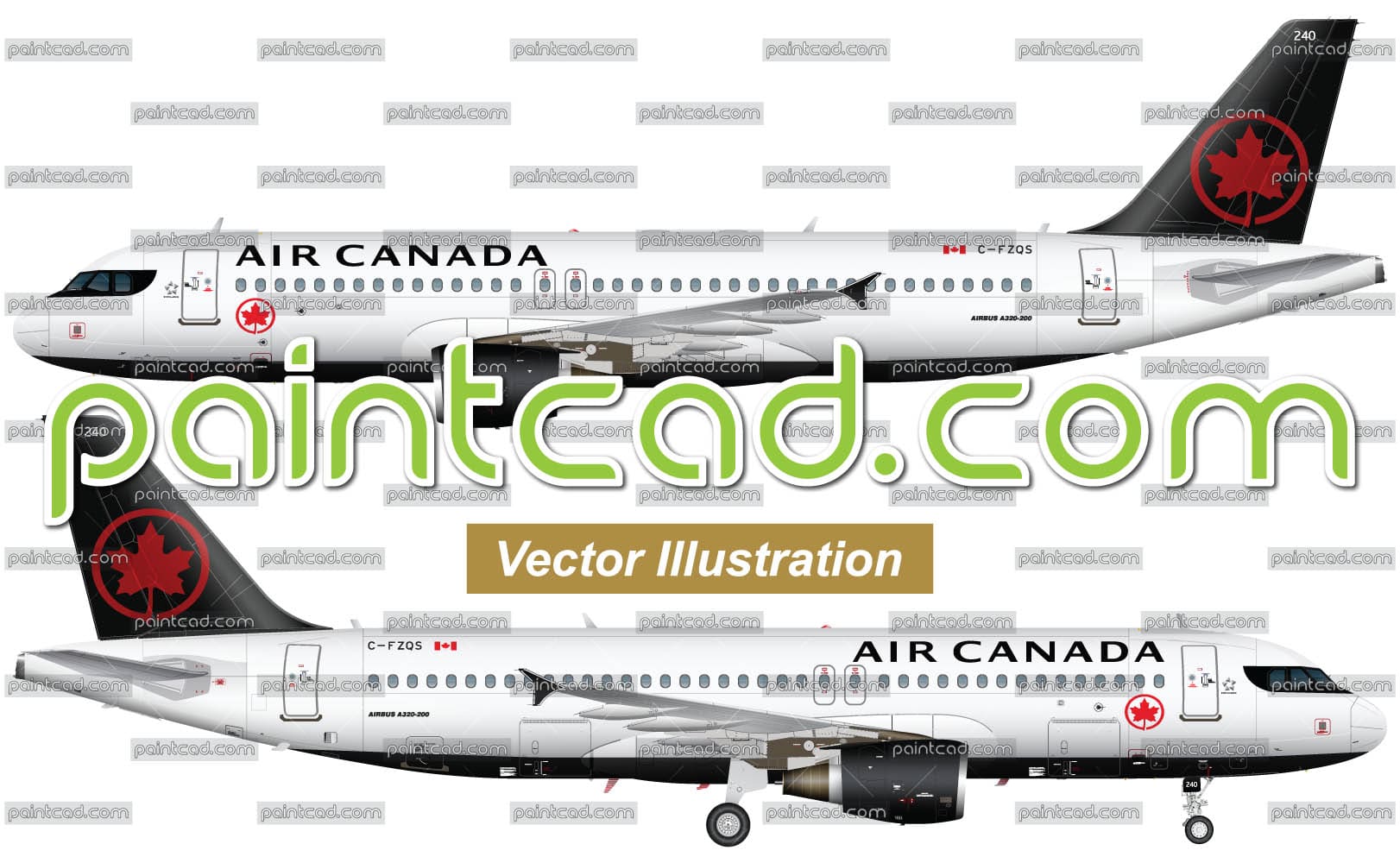 Left and right panoramic view of passenger jet in flight and on the ground. Reporting mark C-FZQS. The Air Canada is memeber of the "Star alliance". Realistic and detailed vector created by real photos. EDITORIAL USE