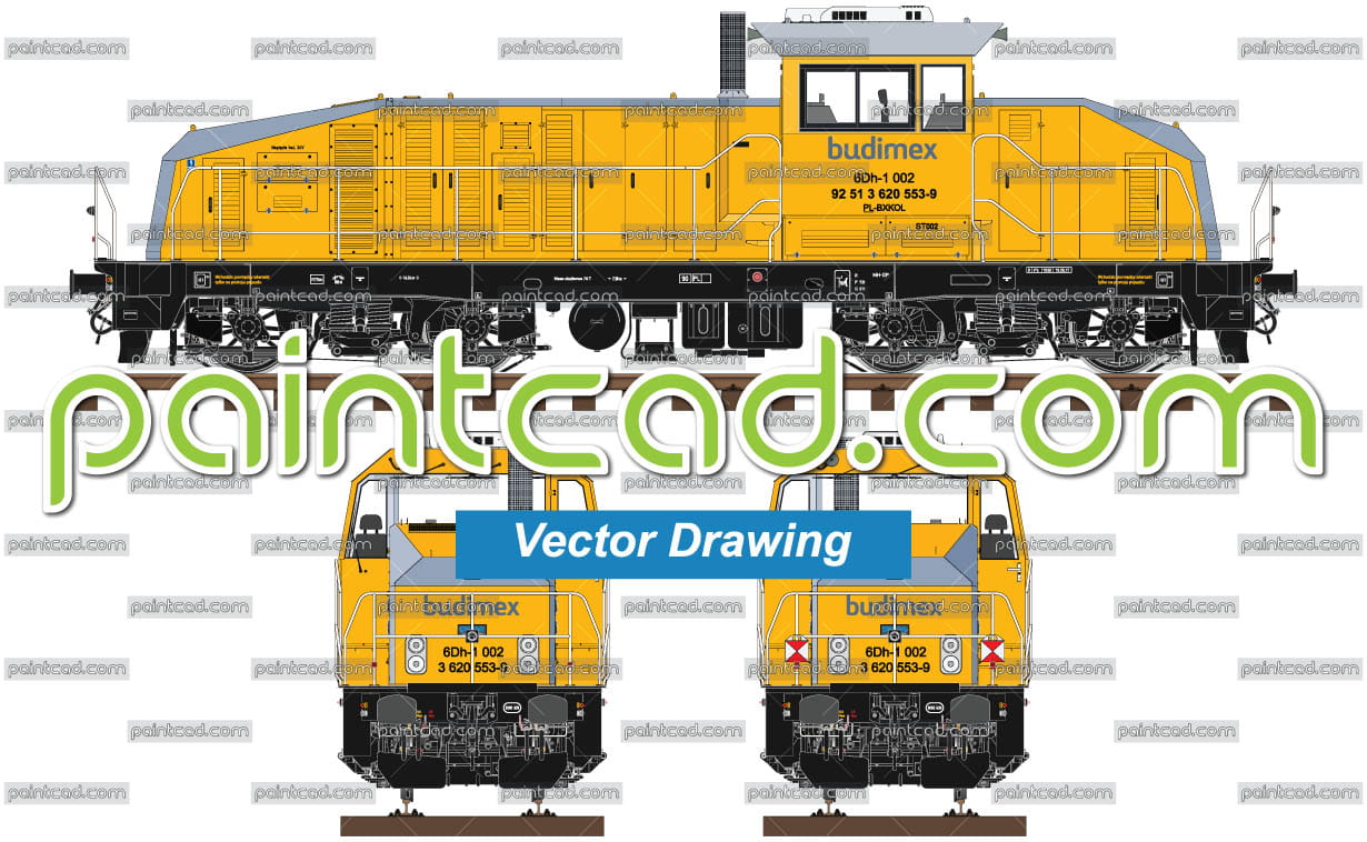 Modernized rail engine SM42 by "Tabor Dębica" company, Poland. Side, front and rear view. Color drafting with high-detail, all technical inscriptions and designations. EDITORIAL USE