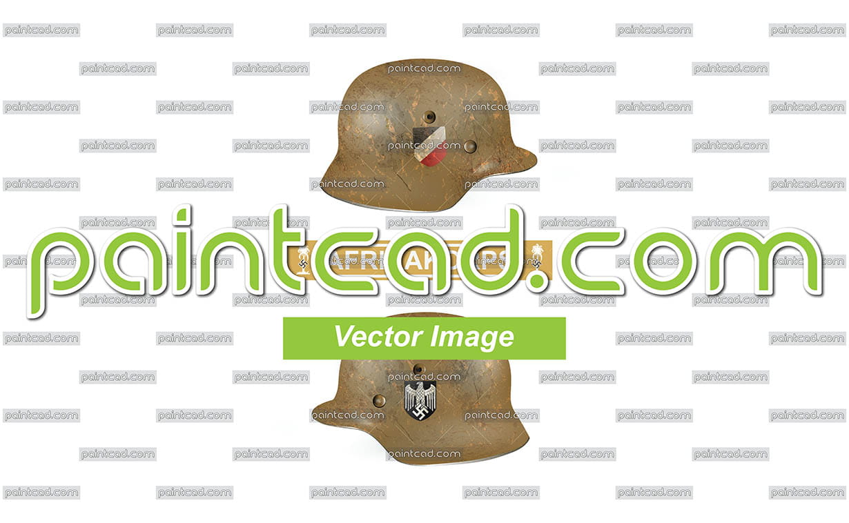 A nazi helmet model M35 painted in sand color and used by DAK - Deutsches Afrika Korps. Classic insignia decals of Wehrmacht on both sides of helmet- imperial flag and eagle. Palm tree and swastika - The Nazi symbol of North African campaign from 1941 to 1943 during WW II. An artistic illustration suitable for historical purposes - research materials, education, documentaries books, and museums.